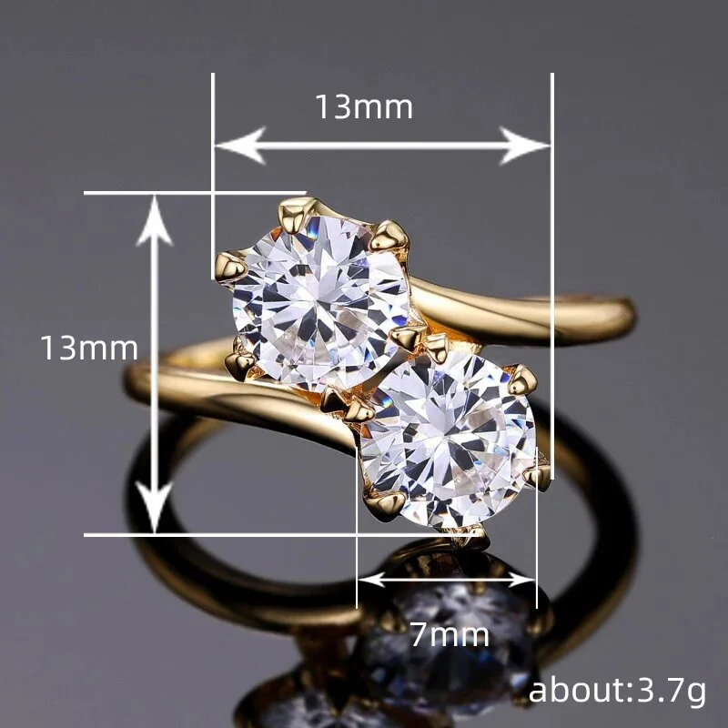 Bague classique à quatre griffes imitation zircon micro-incrustée pour femme, bague de fiançailles à bras torsadé bicolore à double rangée