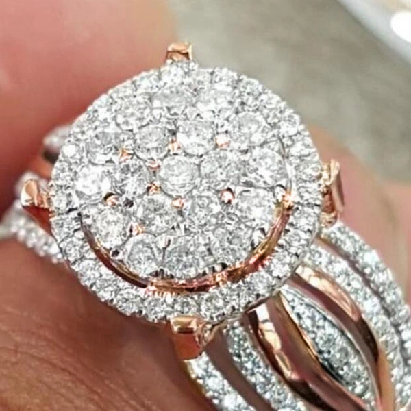 Bague super flash à succès, nouvelle bague de mariage de luxe incrustée de quatre griffes en forme de branche d'arbre pour petite amie