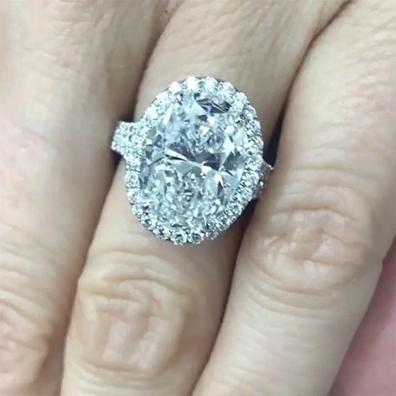 Bague de fiançailles tendance en zircon, nouvelle bague de fiançailles européenne et américaine en forme d'œuf ovale incrustée de diamants imitation diamants, huit cœurs et huit flèches