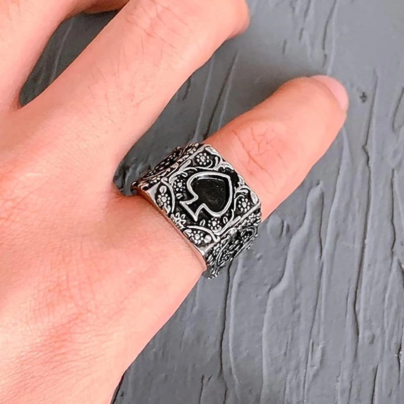 Bague de forme créative européenne et américaine hip hop dominatrice pique cœur unisexe bague poker rétro bague