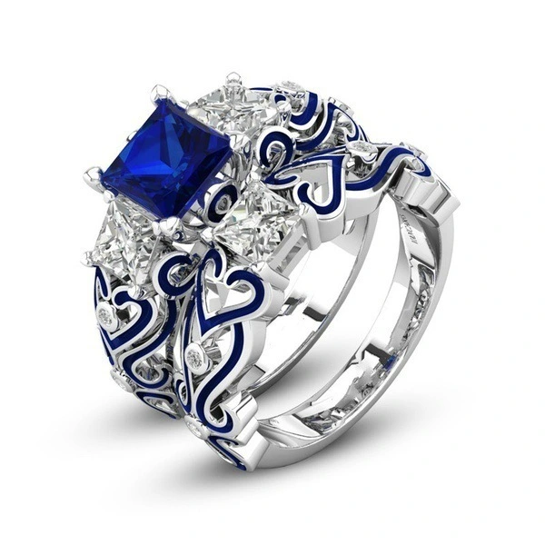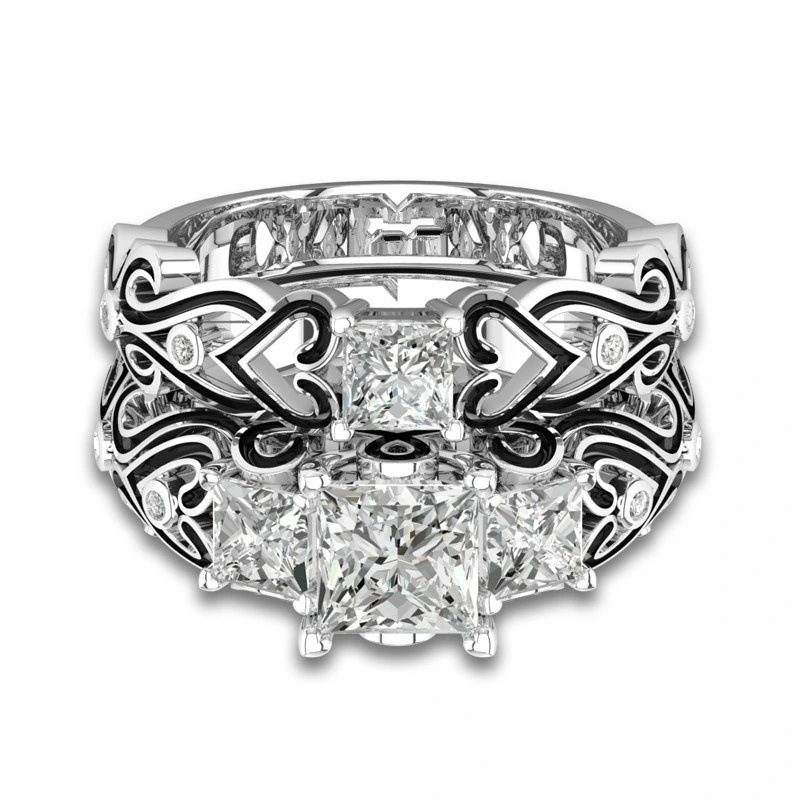 Bague de luxe en alliage de diamant carré en zircon pour femme, plaquée argent, très populaire en Europe et aux États-Unis, paire de bagues