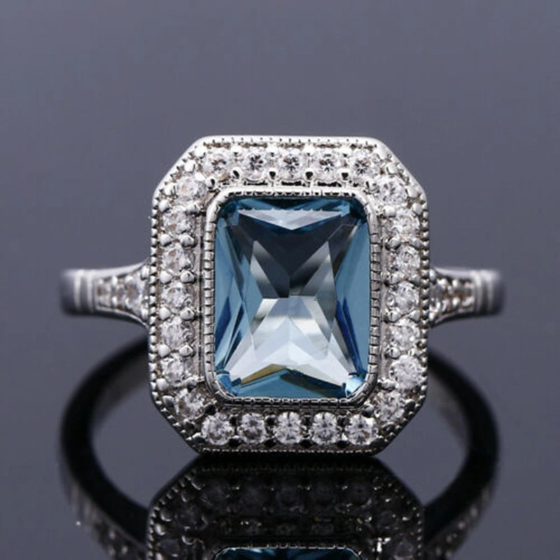 Bague de fiançailles princesse carrée, style européen et américain, incrustée de zircons, bijoux pour femmes