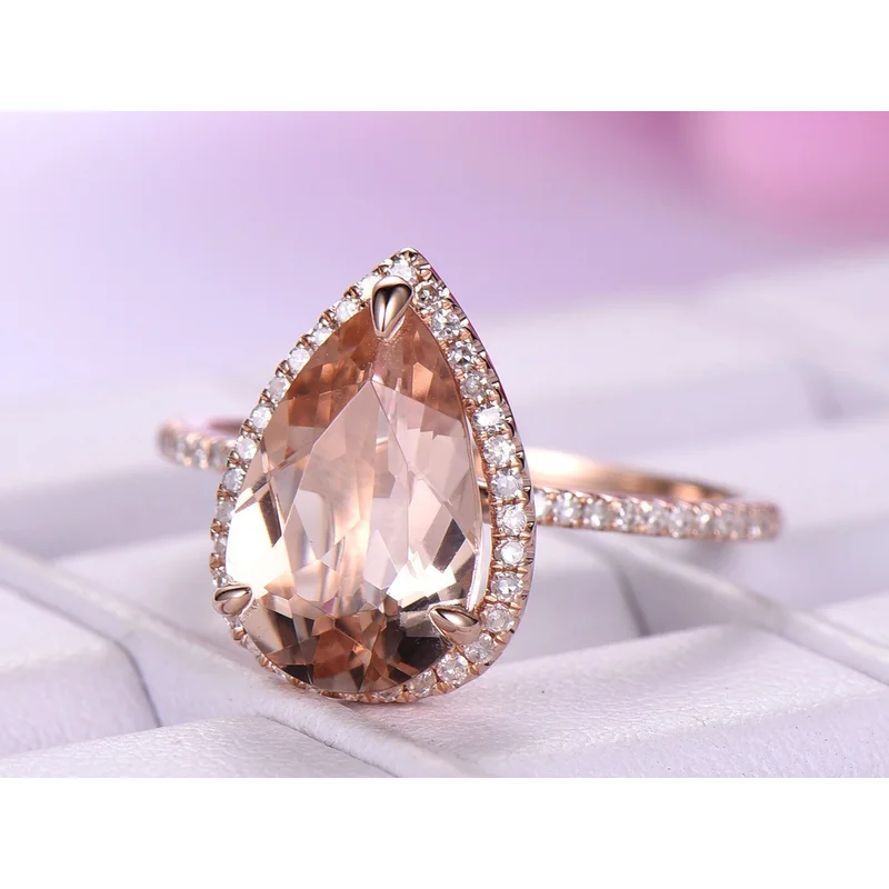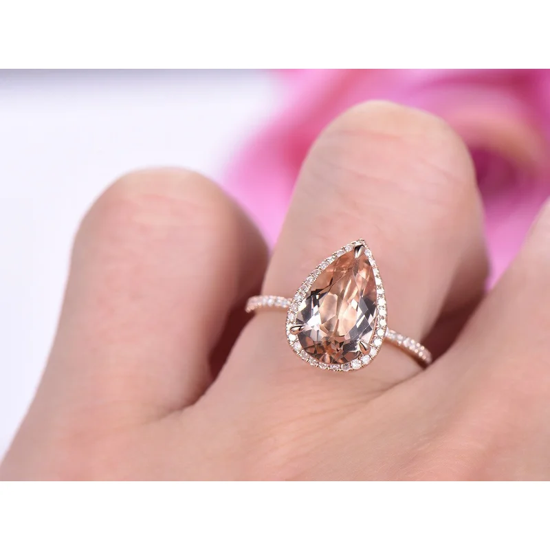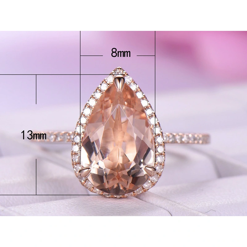 Bague de luxe en or rose plaqué cuivre pour femme, nouvelle collection européenne et américaine, grande pierre précieuse en forme de larme