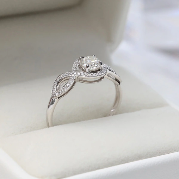 Bague de luxe en zircon micro-incrusté à quatre griffes pour filles, bague haut de gamme, bague ronde creuse croisée pour femme