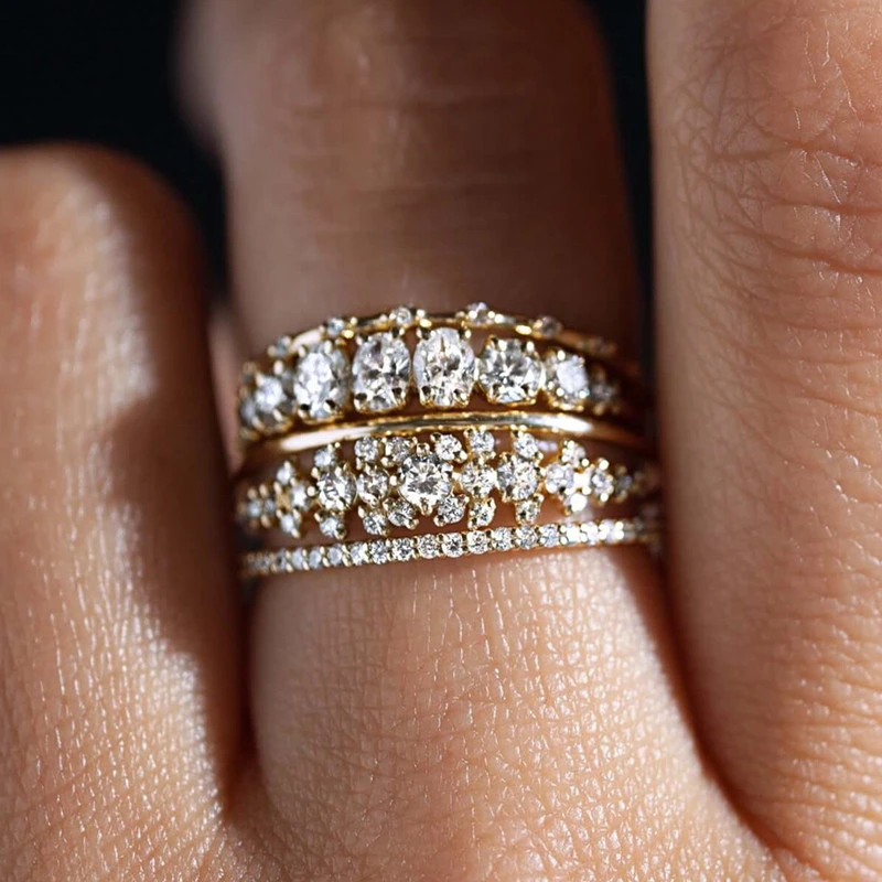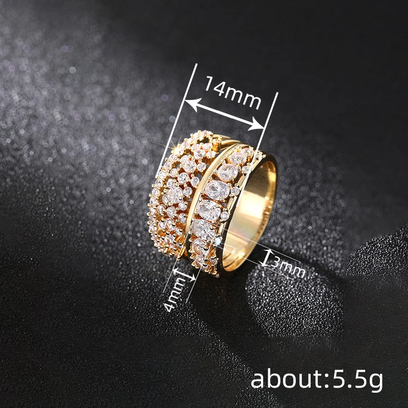 Bague de luxe européenne et américaine, bague en zircon œil de cheval à la mode, bague d'index à design creux multicouche