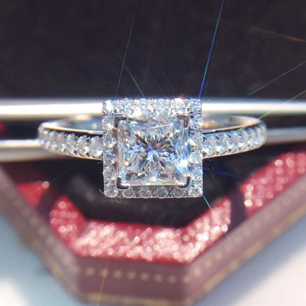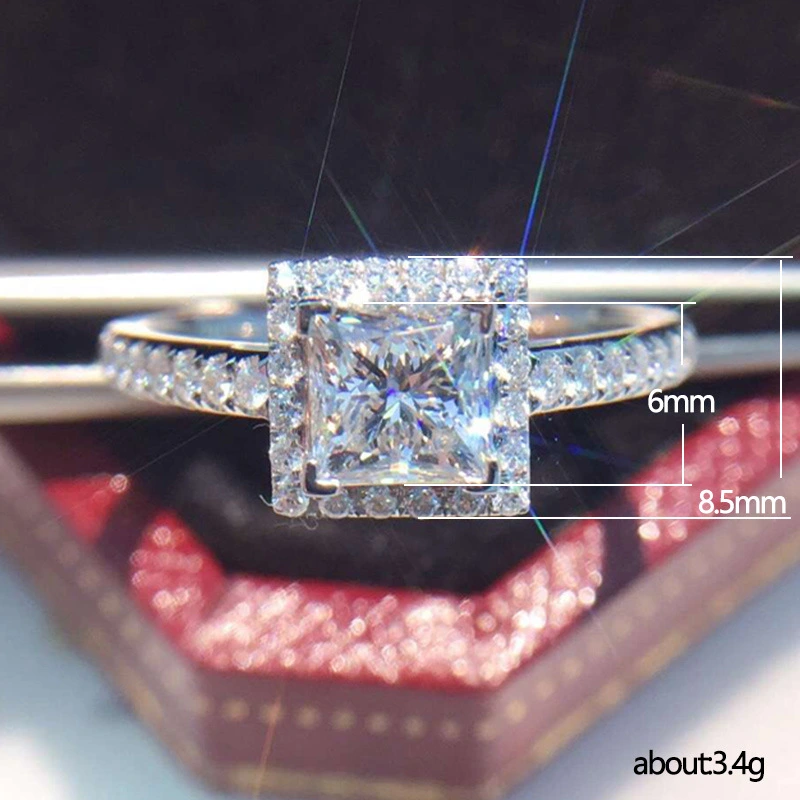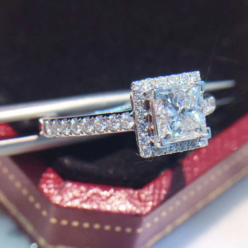 Bague de fiançailles princesse carrée, style européen et américain, incrustée de zircons, bijoux pour femmes