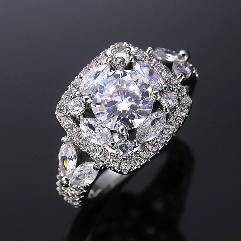 nouvelle bague en zircon creux croix quatre griffes design de mode proposition bague de mariage cadeau d'anniversaire bague