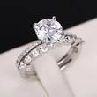 Bague classique à quatre griffes imitation zircon micro-incrustée pour femme, bague de fiançailles à bras torsadé bicolore à double rangée