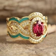 Bague de style palais, style indien et moyen-oriental, trois pièces, pour femme, avec motif géométrique en forme de goutte d'huile
