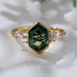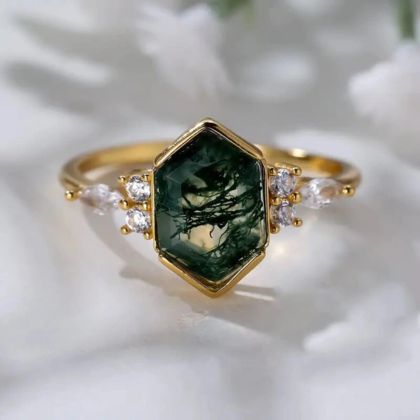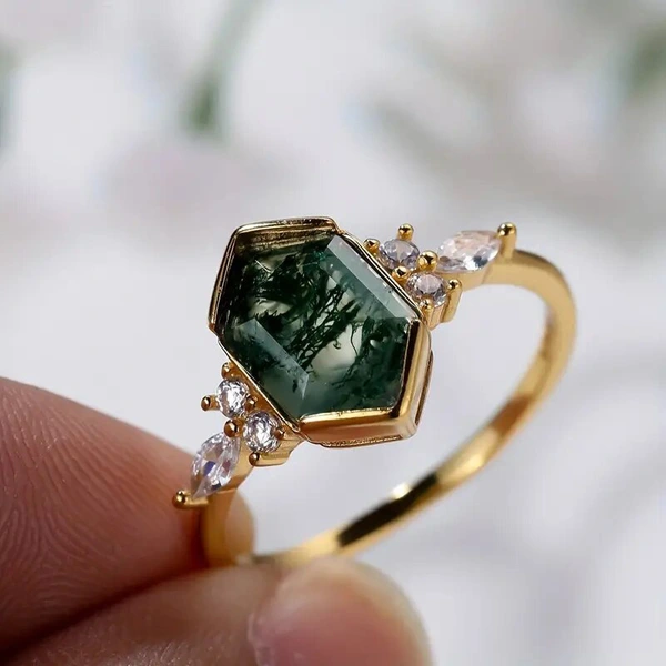 Bague de style pastoral européen et coréen pour femme, bague de conception hexagonale géométrique œil de cheval, bague médiévale de style forêt