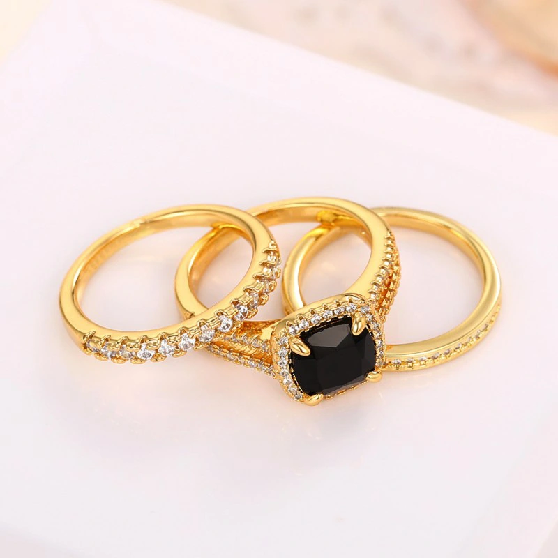 Bague de tempérament de luxe rétro française carrée pour hommes et femmes, même style, ensemble de bagues tendance pour hommes, trois ensembles de bagues
