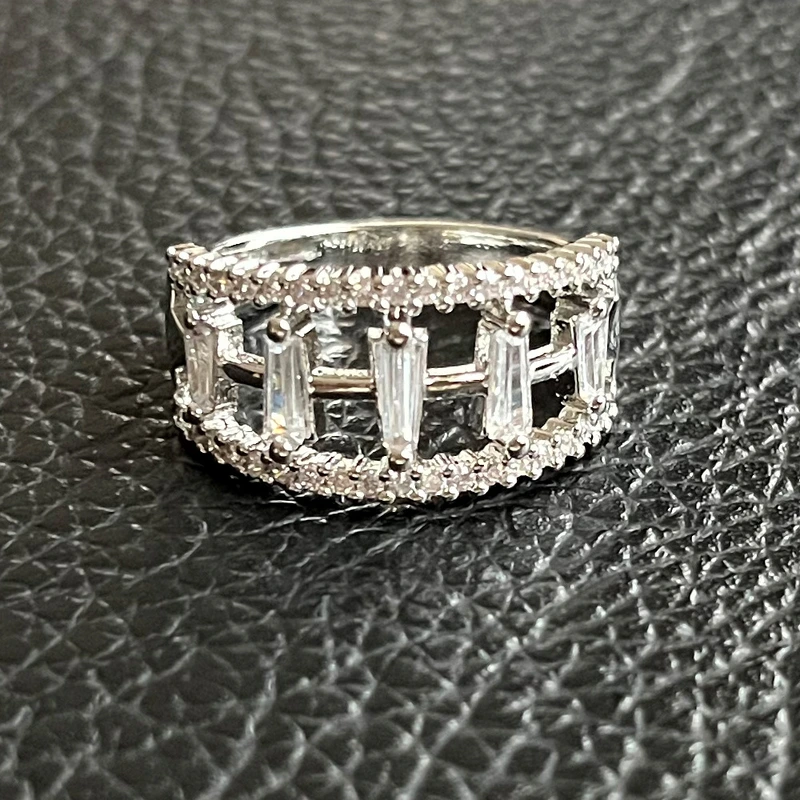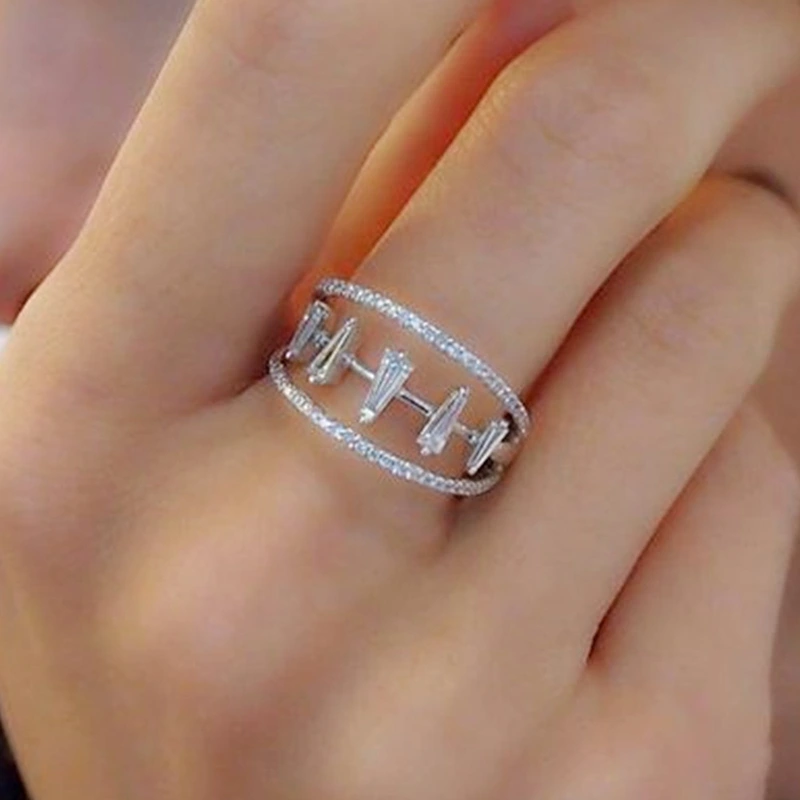 Bague de luxe européenne et américaine, bague en zircon œil de cheval à la mode, bague d'index à design creux multicouche