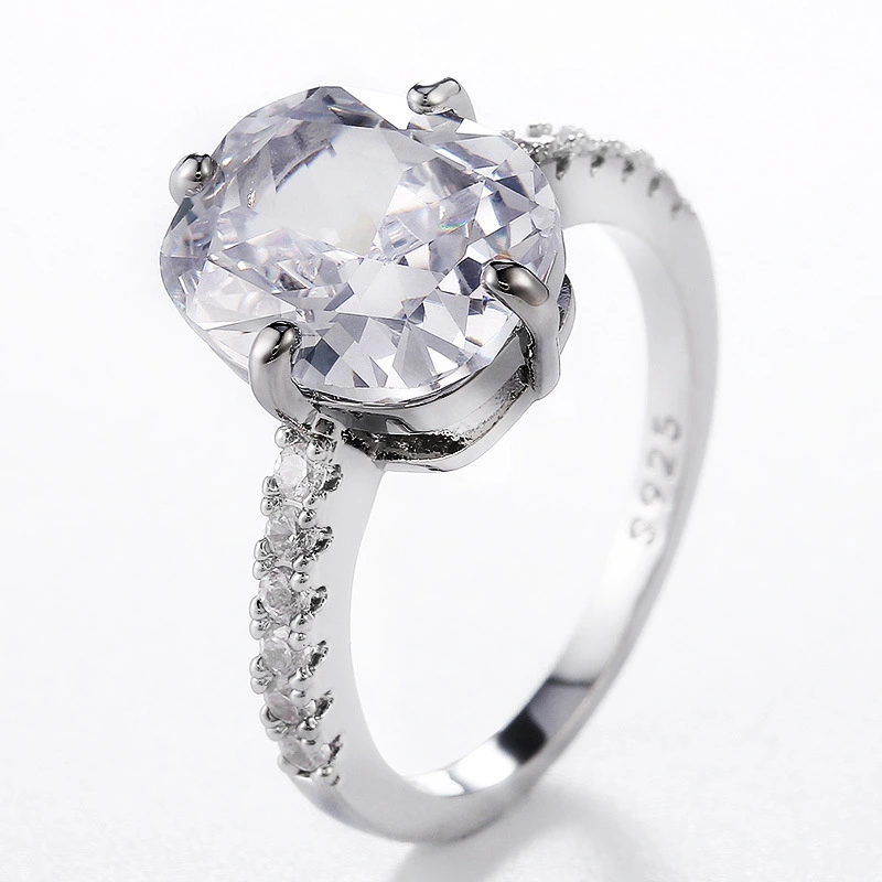 Bague élégante pour femme, nouvelle collection, sertie de zircons ovales, diamants, plaquée cuivre, or blanc, bijoux de fiançailles, accessoires