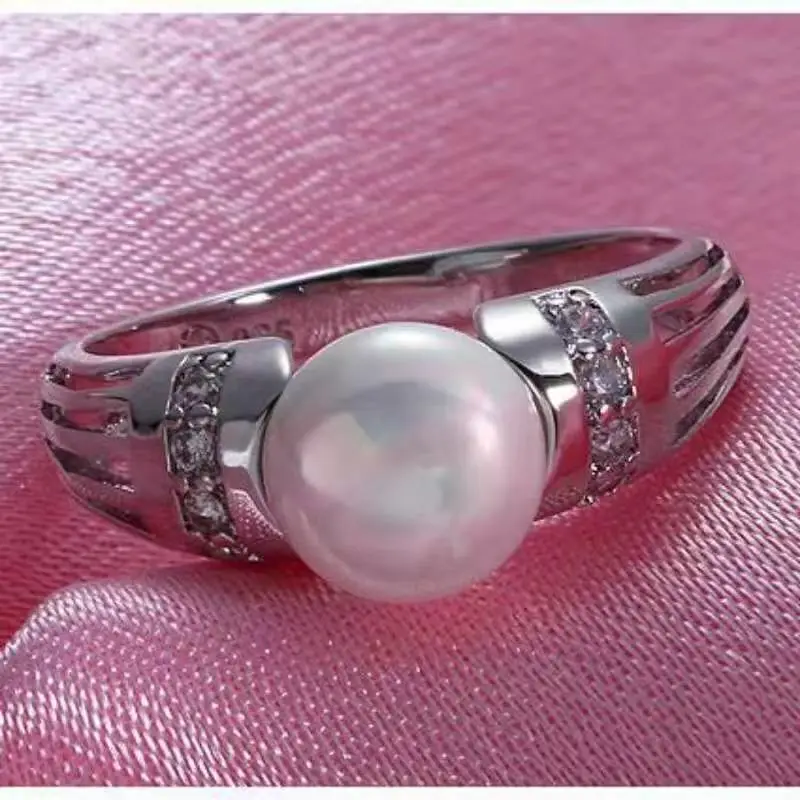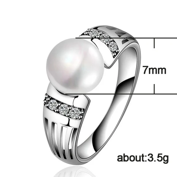 Bague en alliage plaqué K blanc avec strass et perles pour femme, idéale pour une fête