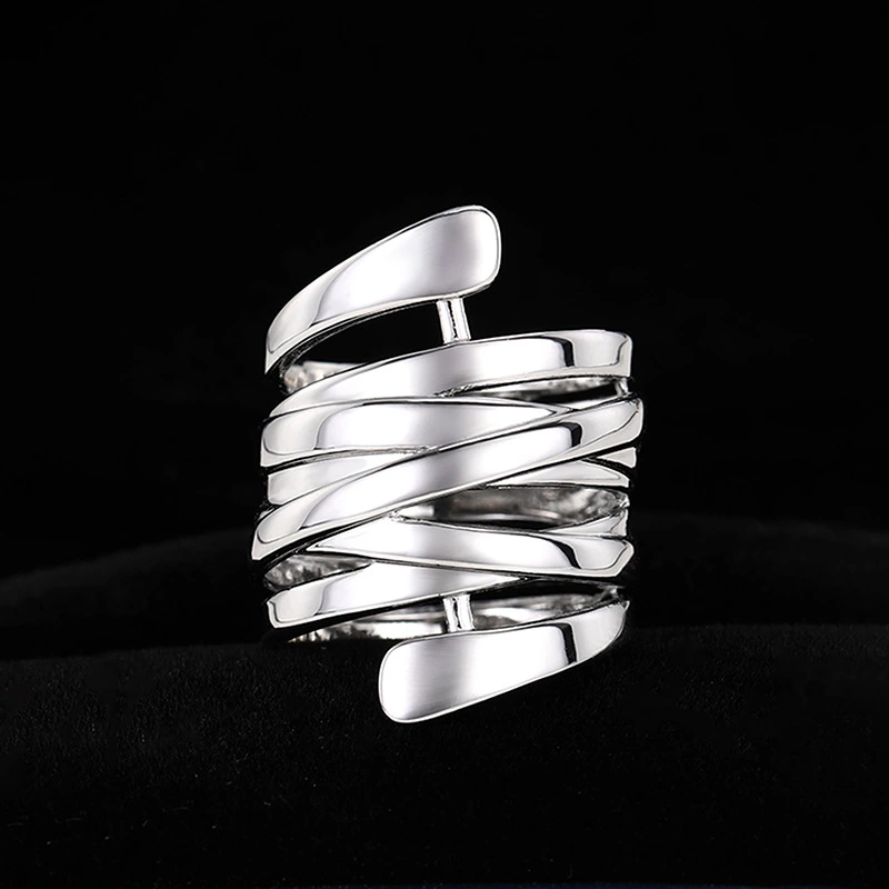 Bague en cuivre créative de style coréen pour femme, anneau enroulé multicouche lisse et exagéré, lignes géométriques