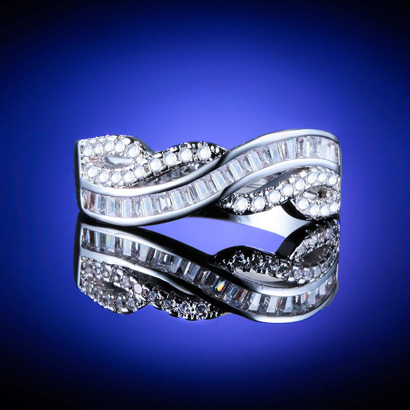 Bague classique à quatre griffes imitation zircon micro-incrustée pour femme, bague de fiançailles à bras torsadé bicolore à double rangée