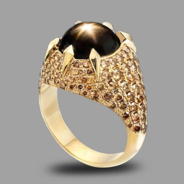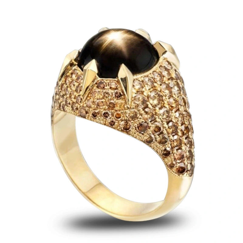 Bague en diamant noir à facettes ovales atmosphériques exagérées pour femmes, bijoux européens et américains, nouvelle collection tendance