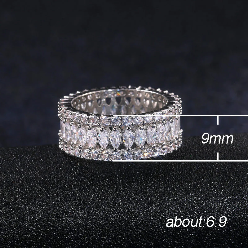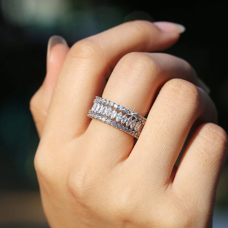 Bague de luxe européenne et américaine, bague en zircon œil de cheval à la mode, bague d'index à design creux multicouche