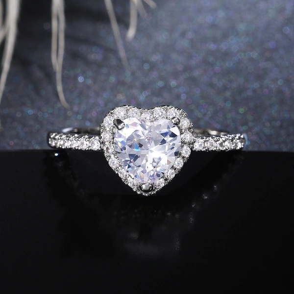 Bague en forme de cœur pour femme, bijou tendance en argent plaqué cuivre et diamants sertis de zircons en forme de cœur