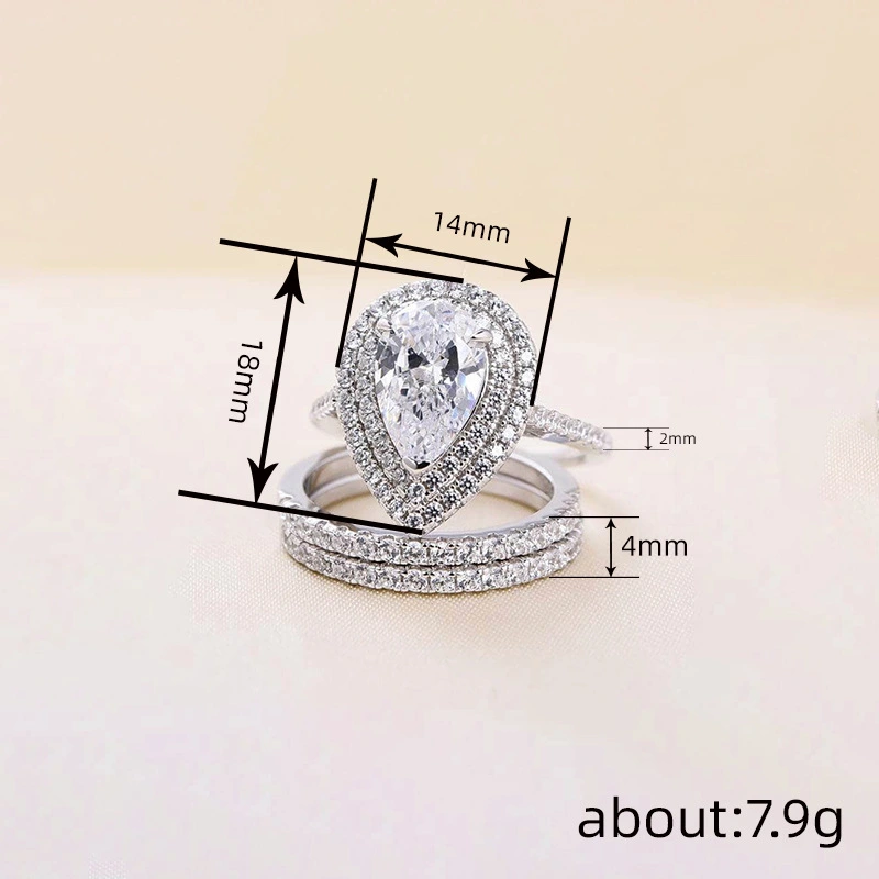 Bague en forme de larme incrustée de diamants pour femme, ensemble de trois bagues géométriques en zircon, bijoux haut de gamme de luxe léger