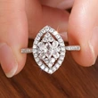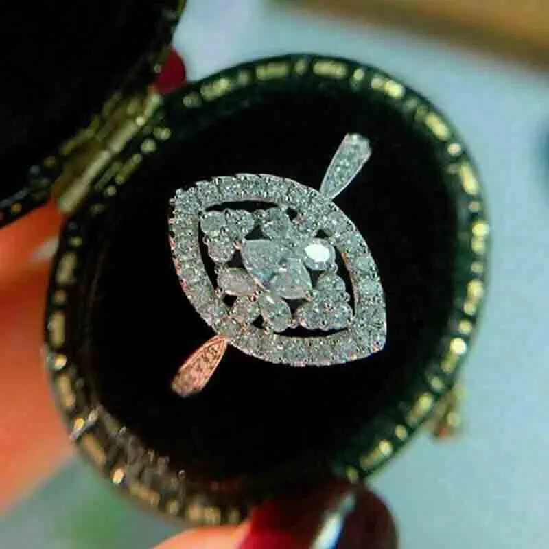 Bague de mariage en zircon brillant œil de cheval pour femme, bijou créatif en direct