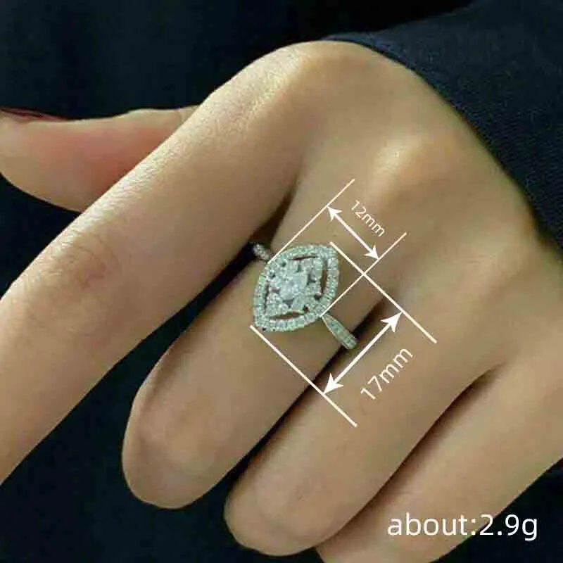 Bague de luxe européenne et américaine, bague en zircon œil de cheval à la mode, bague d'index à design creux multicouche