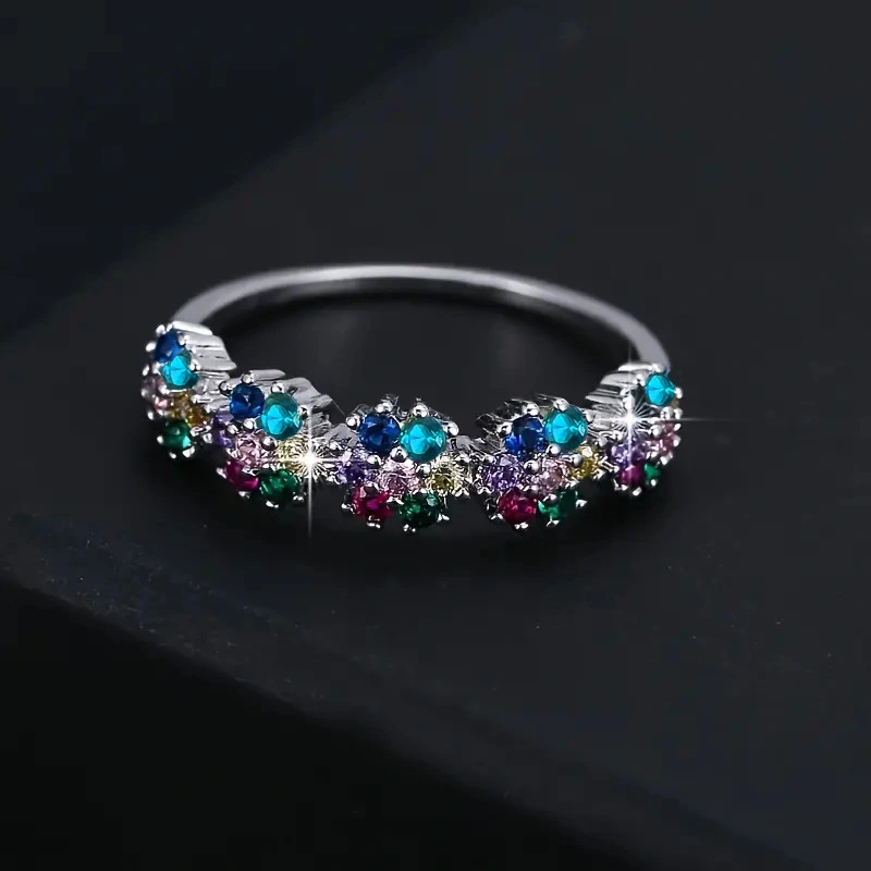 Bague en métal zircon coloré, design de niche, personnalité rétro, bague simple, bague de tempérament polyvalente