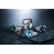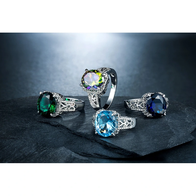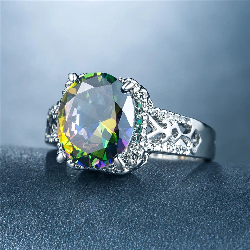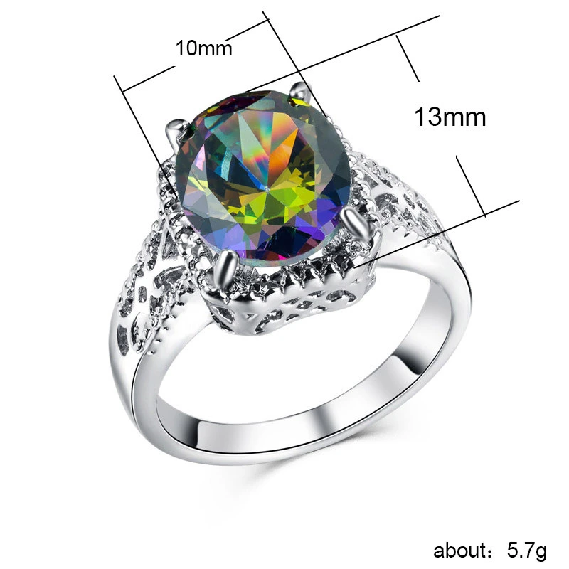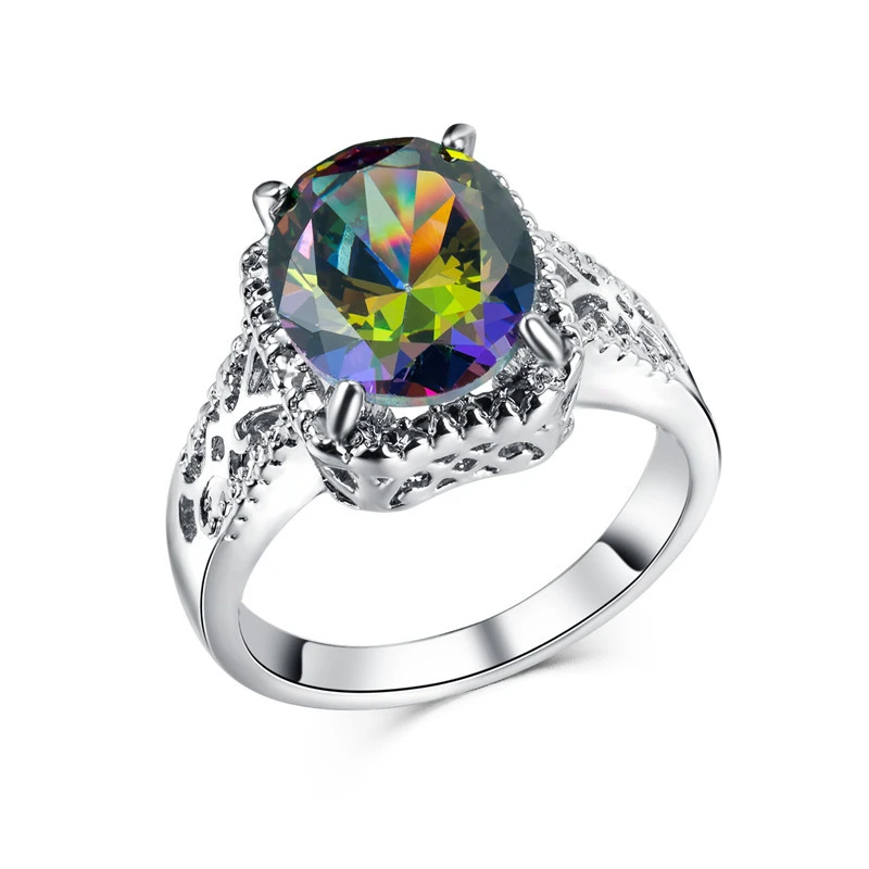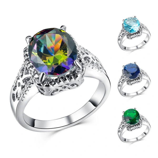 Bague en zircon coloré pour femmes européennes et américaines, alliage plaqué platine, bijoux de mode en gros
