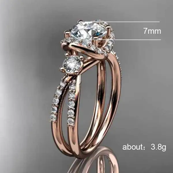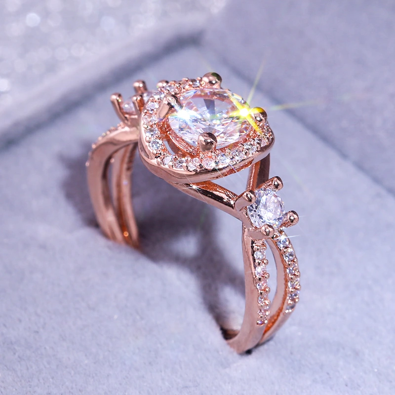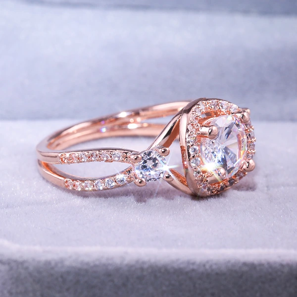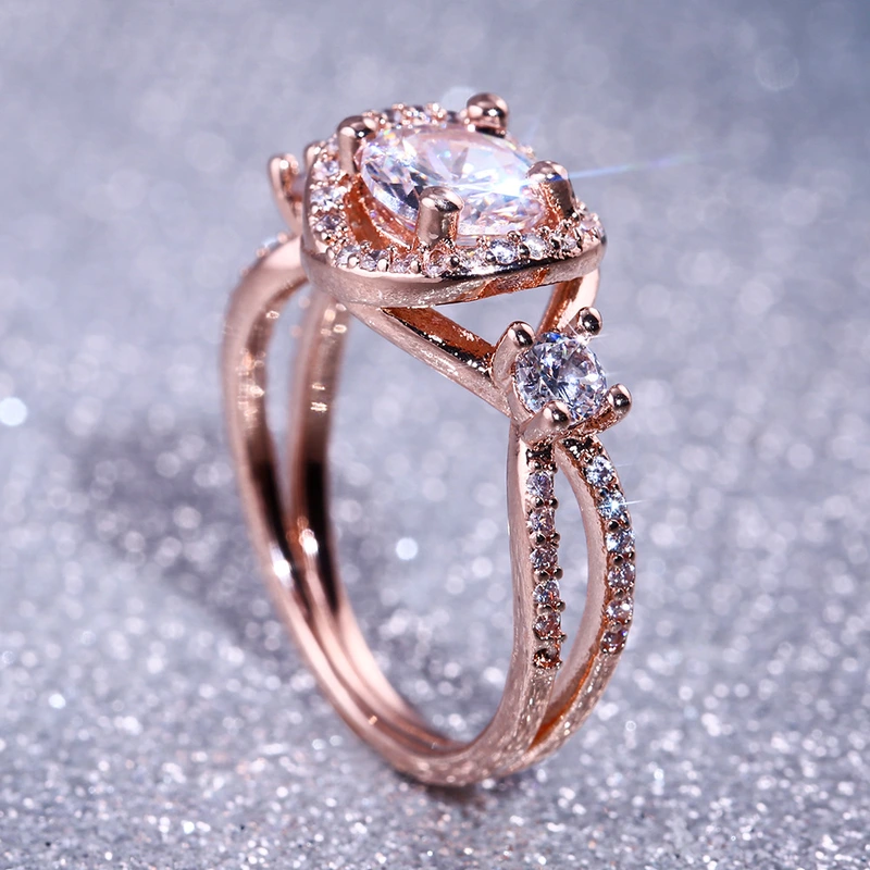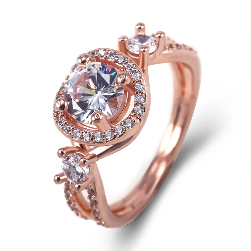 Bague en zircon géométrique en or rose, source de bijoux européenne et américaine populaire, vente en gros de bijoux à succès