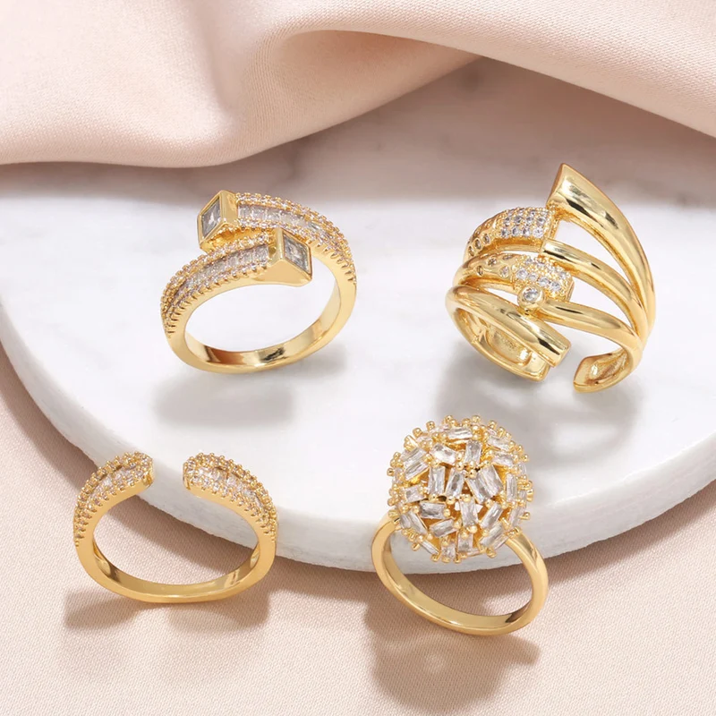 Bague en zircon incrusté de mode européenne et américaine, style féminin, léger, luxe, haut de gamme, plaqué or, bijoux en gros, ris48