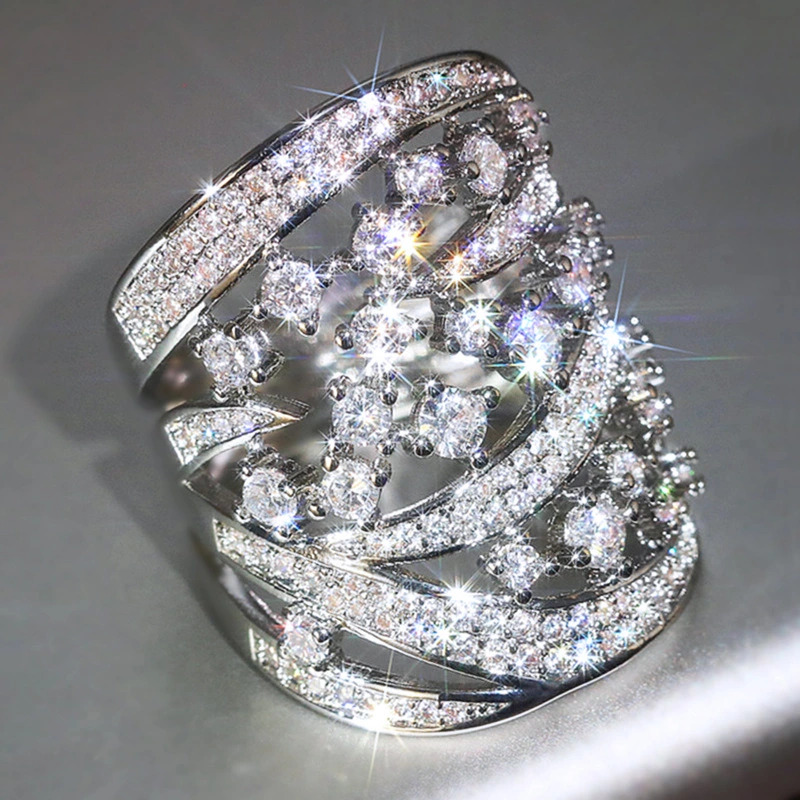 Bague en zircon incrusté scintillant pour femme, bague élégante au design lourd avec des lignes géométriques, très populaire auprès du fabricant