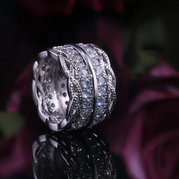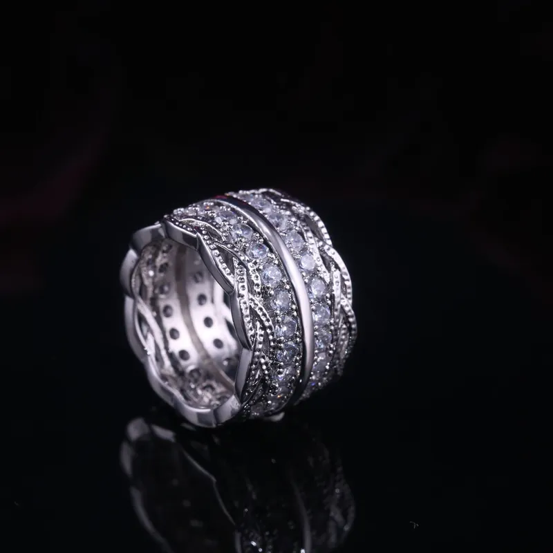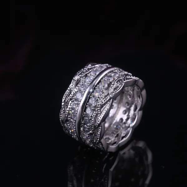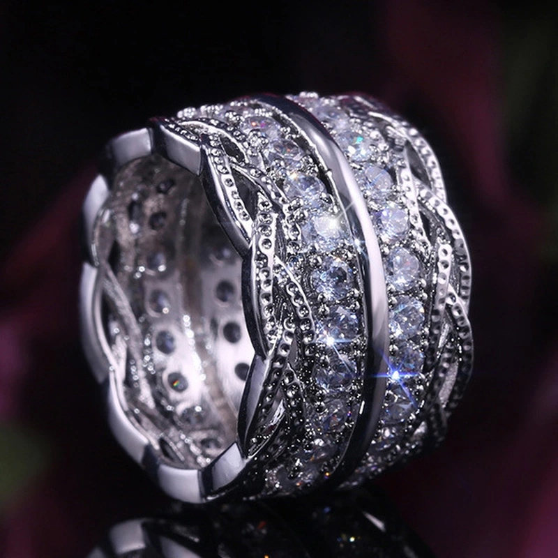 Bague en zircon micro-incrustée de dentelle rétro pour femme, style palais européen et américain, version large et polyvalente, vente en gros