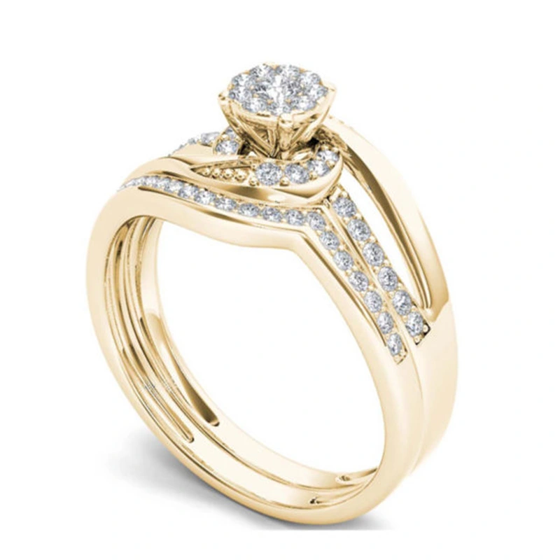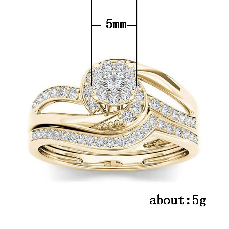 Bague classique à quatre griffes imitation zircon micro-incrustée pour femme, bague de fiançailles à bras torsadé bicolore à double rangée