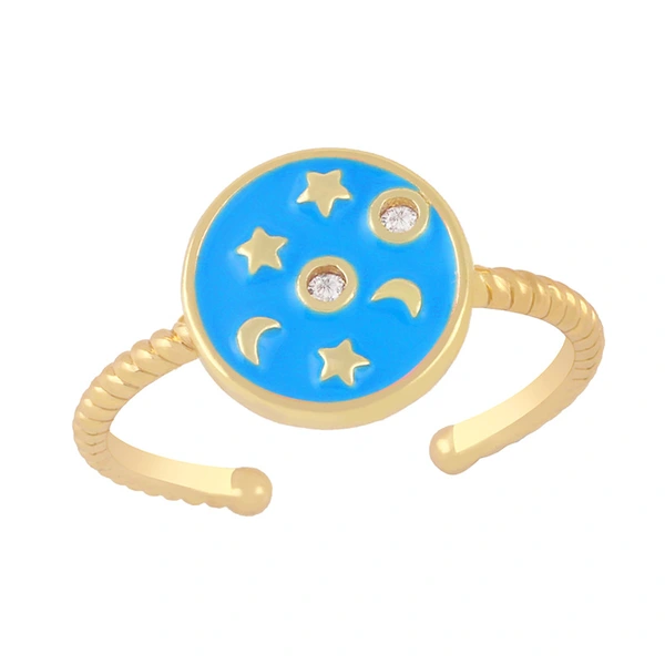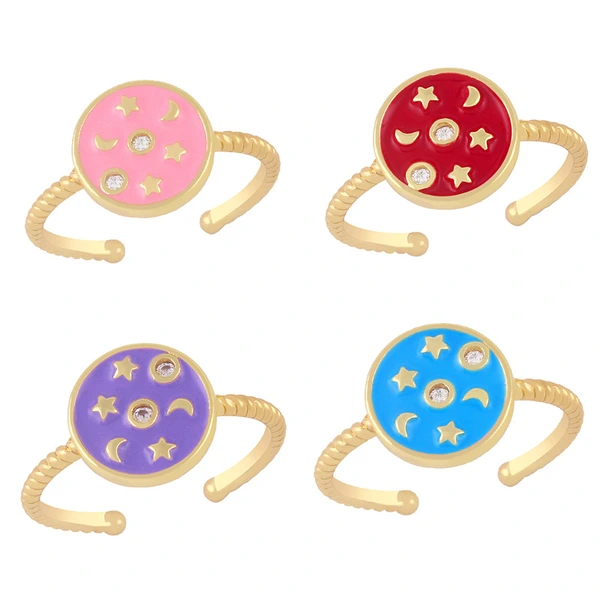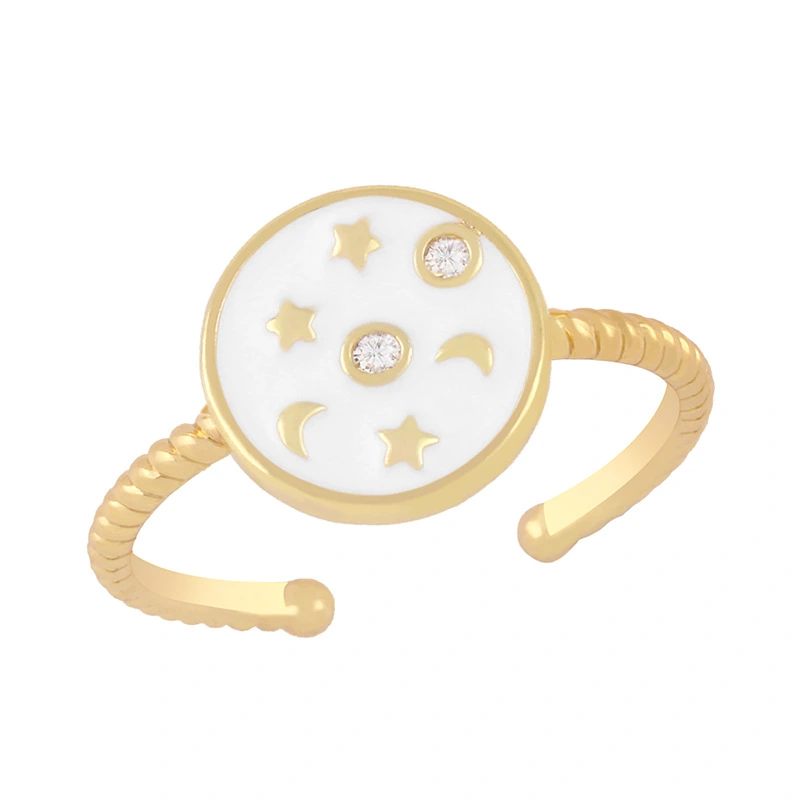 Bague étoile, lune et soleil pour femme, vente à chaud, bague ouverte en forme de goutte d'huile, style européen et américain, Rim79