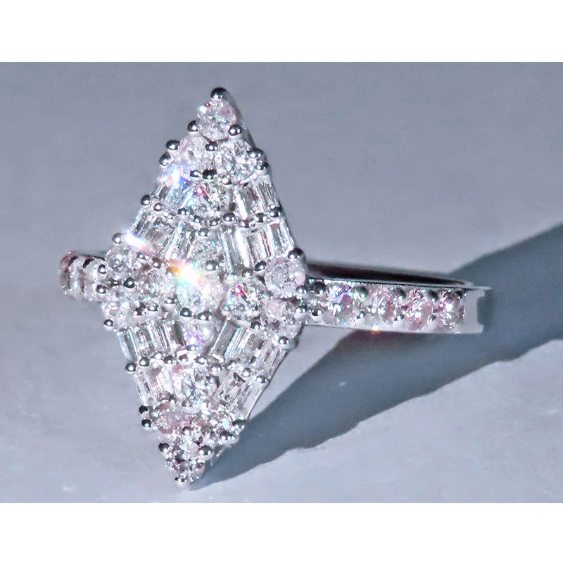 Bague de luxe européenne et américaine, bague en zircon œil de cheval à la mode, bague d'index à design creux multicouche