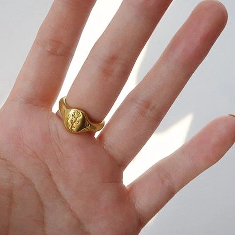 Bague européenne et coréenne pour femme, nouvelle collection, style rétro, élégante, motif fleur ovale sculptée