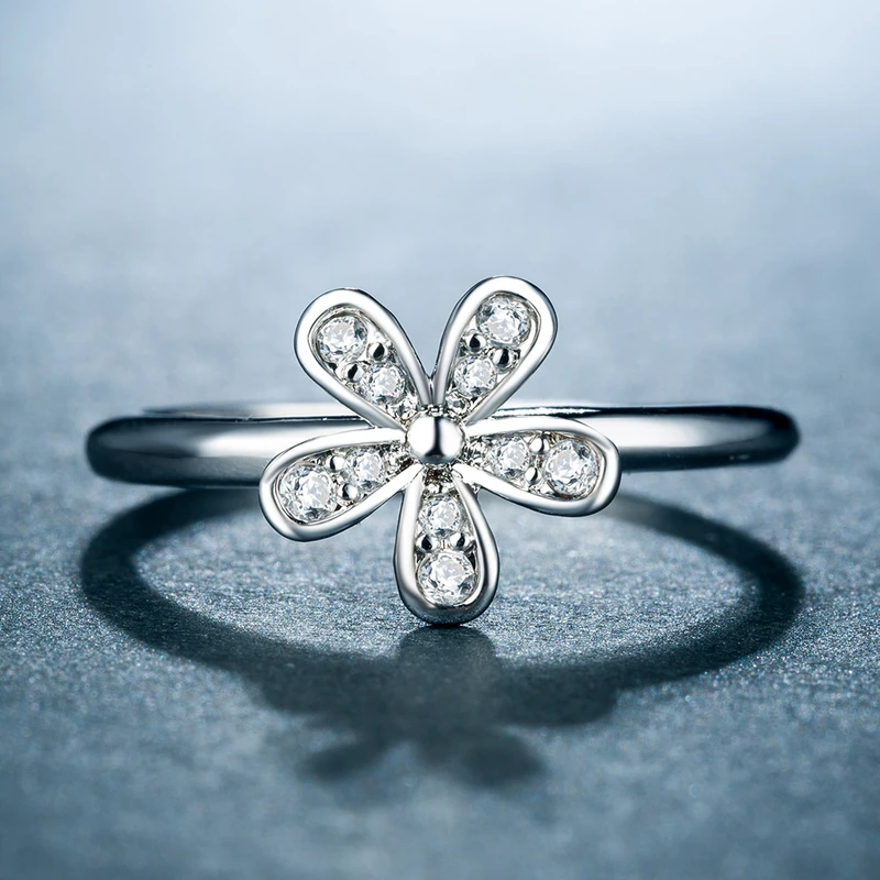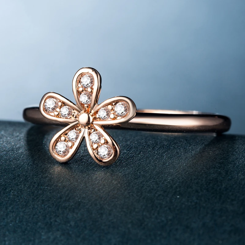 Bague exquise et polyvalente en forme de petite marguerite pour femme, bijoux en argent plaqué cuivre, or rose et zircon