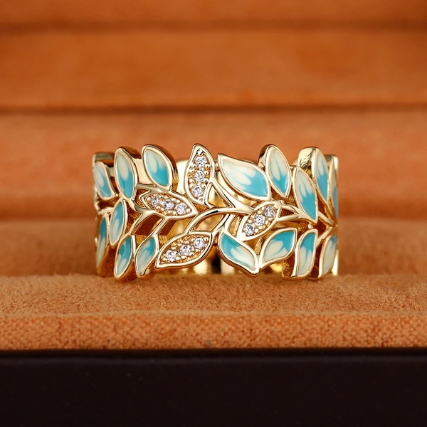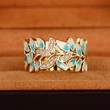 Bague feuille époxy émaillée incrustée de pierre, très populaire en Europe et aux États-Unis, simple et à la mode, bijoux de célébrités assortis au réseau de fête