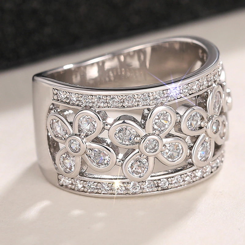 nouvelle bague en zircon creux croix quatre griffes design de mode proposition bague de mariage cadeau d'anniversaire bague