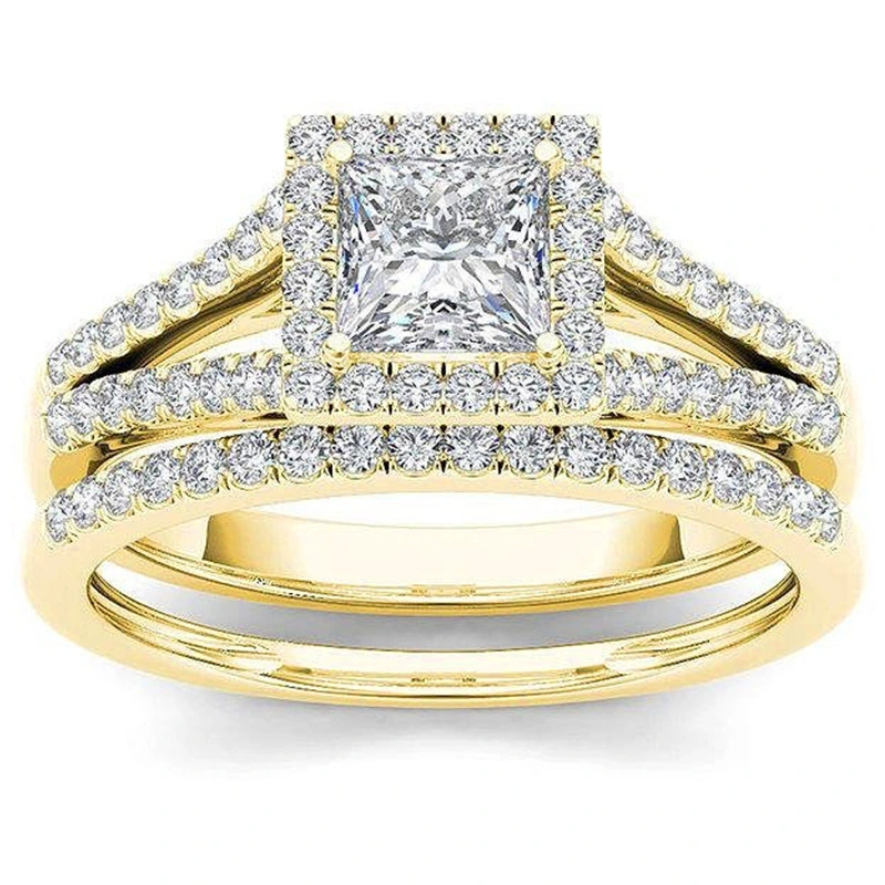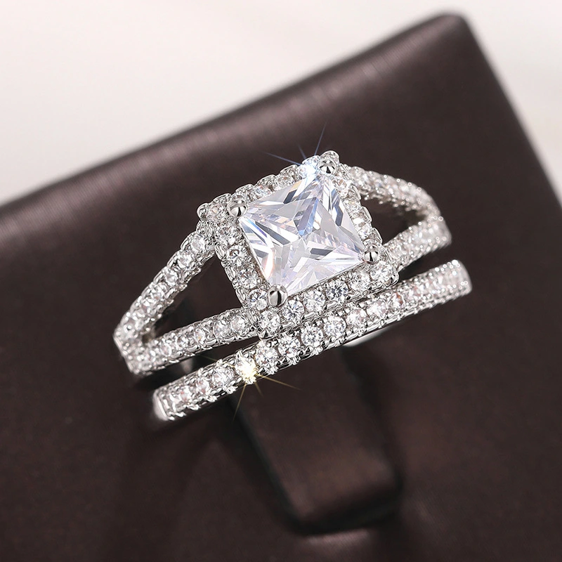 Bague de fiançailles princesse carrée, style européen et américain, incrustée de zircons, bijoux pour femmes
