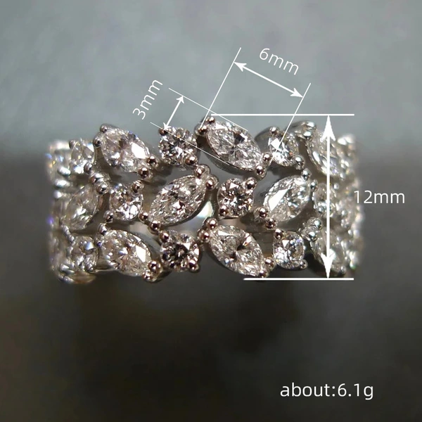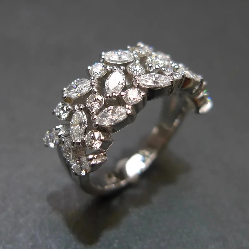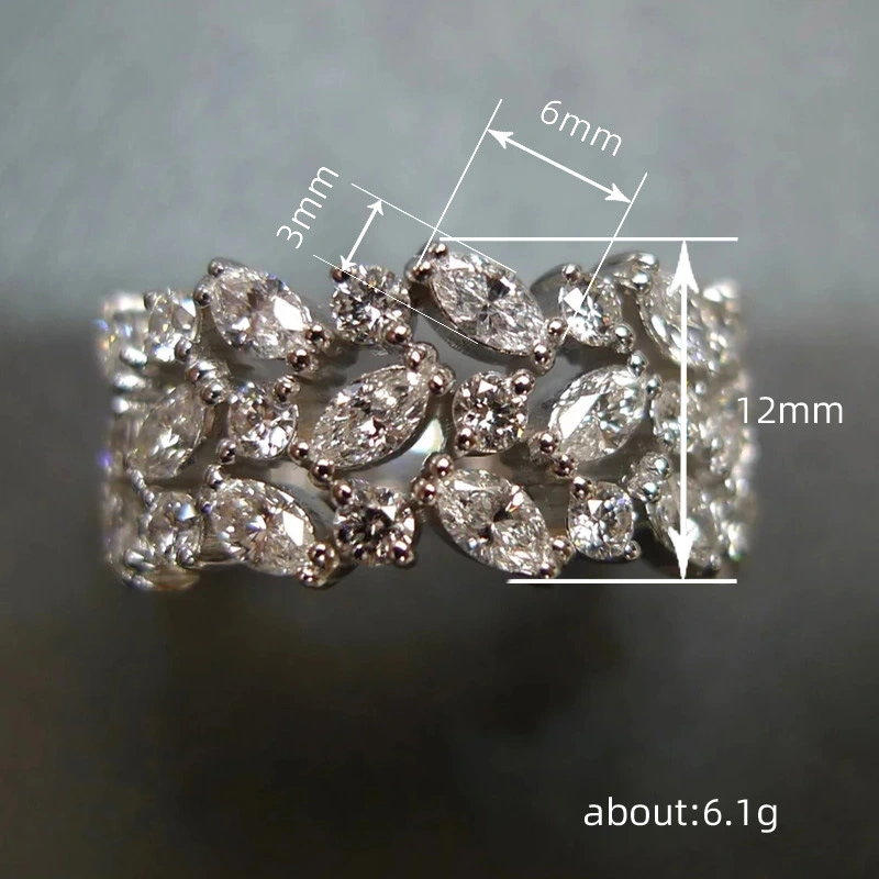 Bague de luxe européenne et américaine, bague en zircon œil de cheval à la mode, bague d'index à design creux multicouche