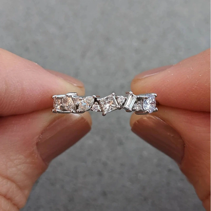 Bague de mariage en zircon brillant œil de cheval pour femme, bijou créatif en direct