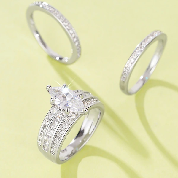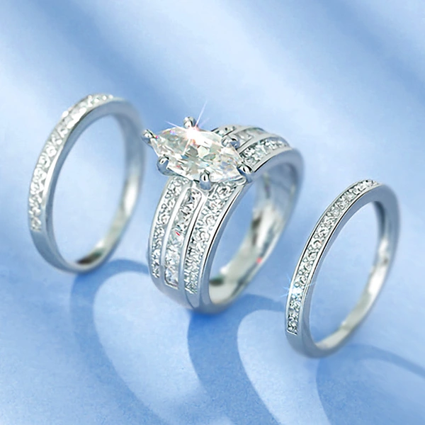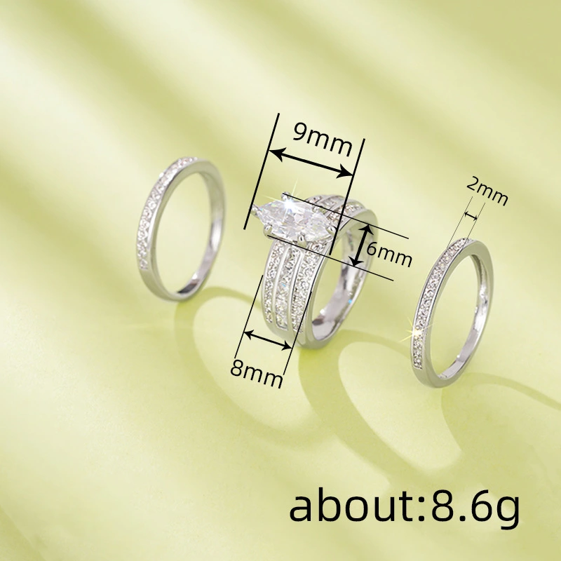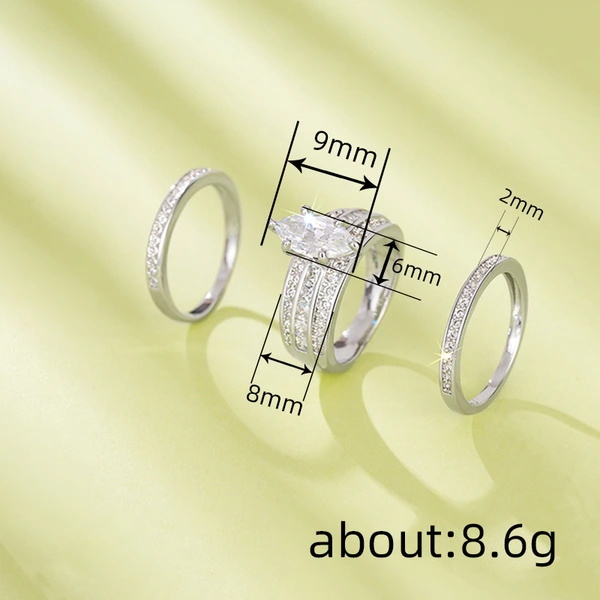 Bague géométrique œil de marquis européen et américain, ensemble de trois pièces, accessoires de mode de luxe légers en zircon, bague de fiançailles et de mariage