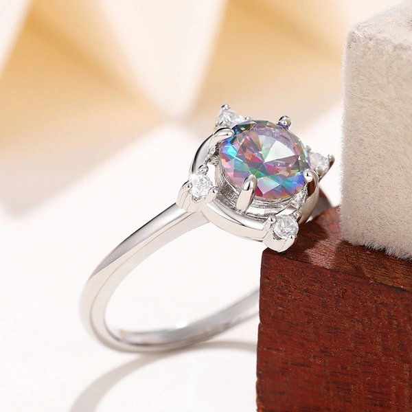 Bague index en pierres précieuses de luxe légère, bague dégradée colorée pour filles, couronne, bague princesse mondaine fraîche et délicate