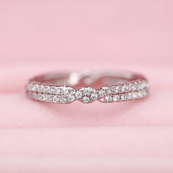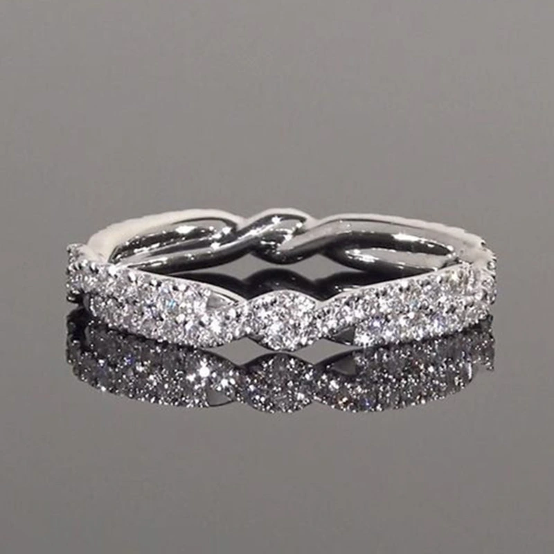 Bague classique à quatre griffes imitation zircon micro-incrustée pour femme, bague de fiançailles à bras torsadé bicolore à double rangée