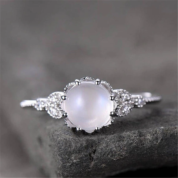 Bague octogonale en zircon incrusté de pierre de lune imitation, cadeau de Saint-Valentin, design simple, bague pour petite amie