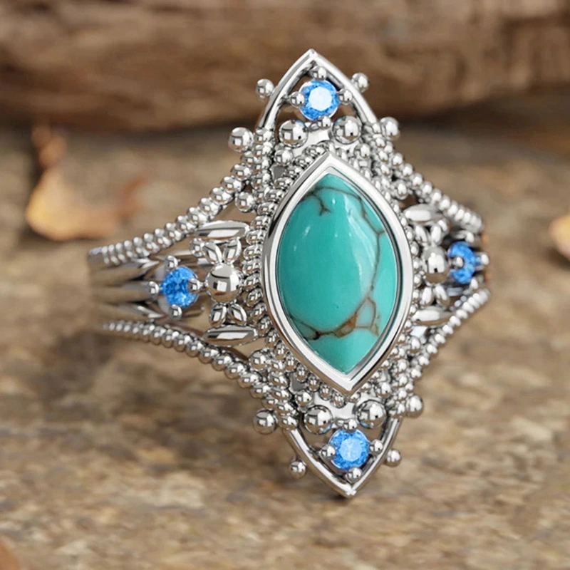 Bague œil de cheval style bohème pour femme, imitation turquoise, nouvelle bague style chinois, art rétro, vente directe d'usine