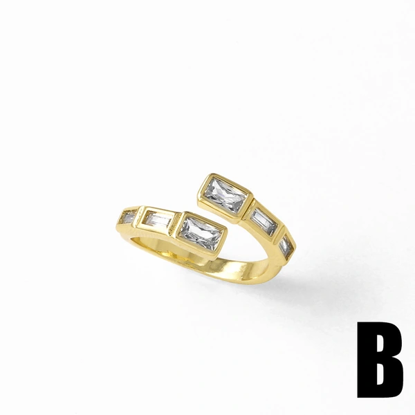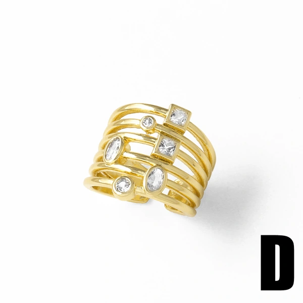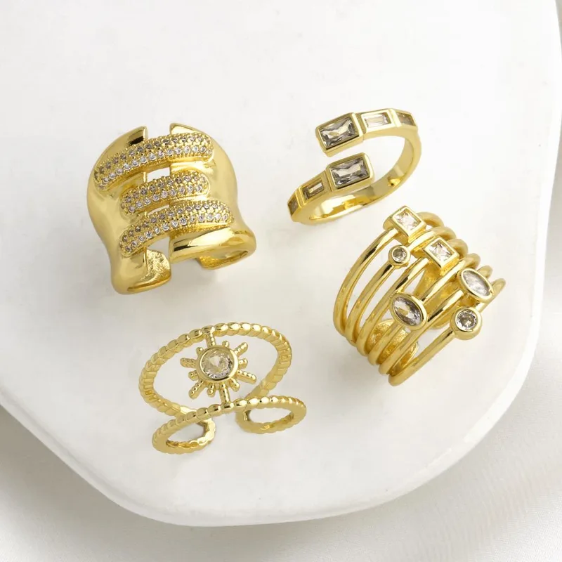 Bague ouverte double couche en zircon plaqué or pour femme, bijou tendance en Europe et aux États-Unis, rij19