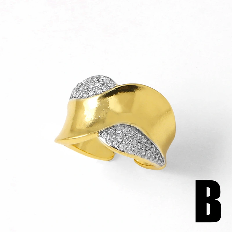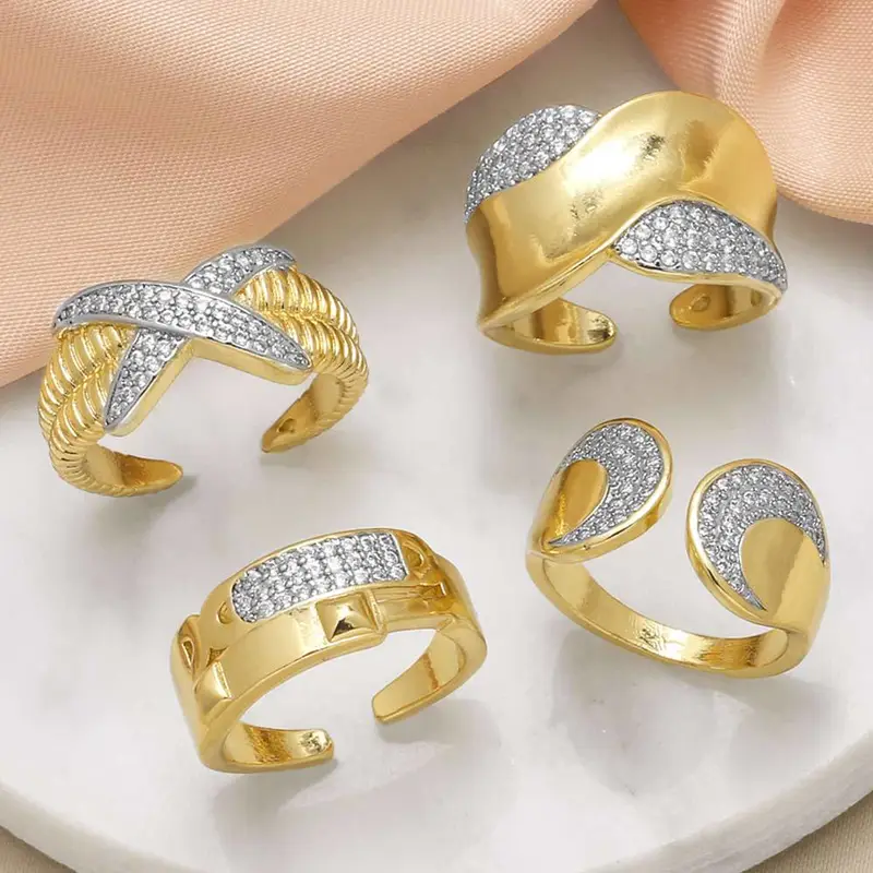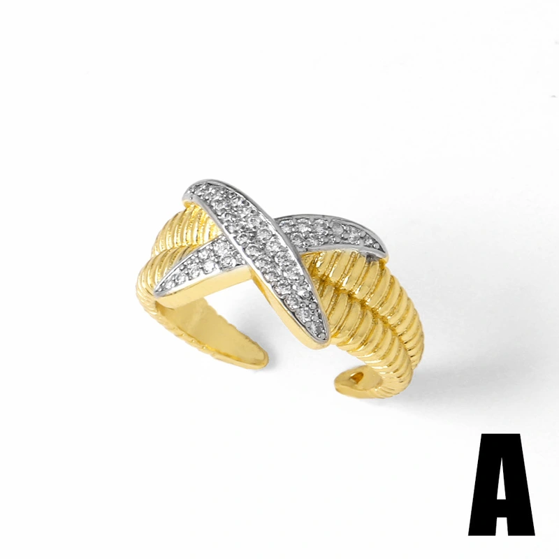 Bague ouverte en croix bicolore plaquée or pour femme, bijou tendance, bague entièrement en zircone, rih60
