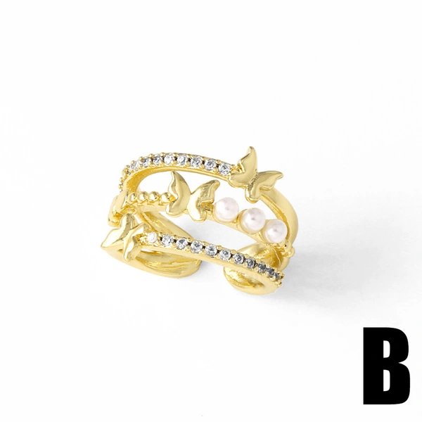 Bague ouverte en forme de croix et de papillon pour femme, bijou en plaqué or, style irrégulier, disponible en Europe et aux États-Unis, rir91